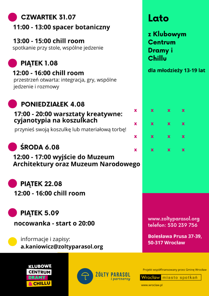 Projekt Klubowe Centrum Dramy i Chillu jest współfinansowany ze środków Gminy Wrocław www.wroclaw.pl