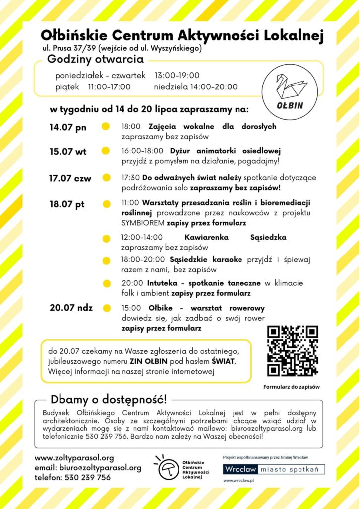 Do 20.07 czekamy też na Wasze zgłoszenia do ostatniego, jubileuszowego numeru ZIN OŁBIN – tematem przewodnim jest „ŚWIAT”. Szczegóły na naszej stronie.