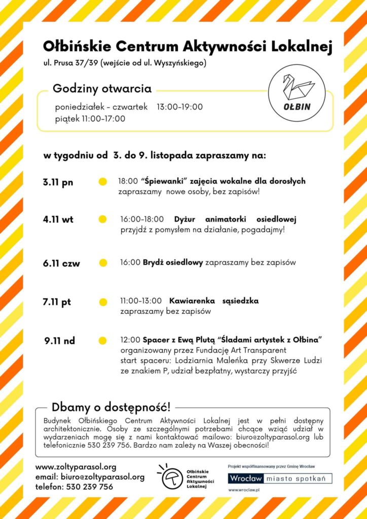 Projekt Ołbińskie Centrum Aktywności Lokalnej współfinansowany przez Gminę Wrocław www.wroclaw.pl