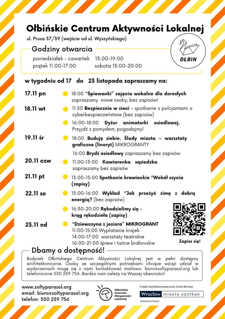 Projekt Ołbińskie Centrum Aktywności Lokalnej jest współfinansowany ze środków Gminy Wrocław www.wroclaw.pl