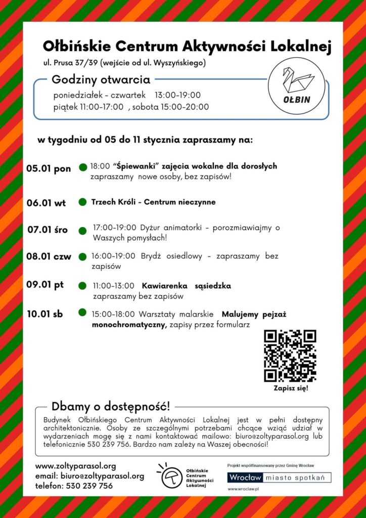 Ołbińskie Centrum Aktywności Lokalnej ul. Prusa 37/39 (wejście od ul. Wyszyńskiego), tel. 530 239 756