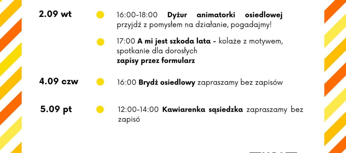 Osoby zainteresowane prosimy o kontakt przez FB, mailowo pod adresem biuro@zoltyparasol.org, lub telefonicznie: 505 86 96 97. Link do spotkania przekażemy zainteresowanym!